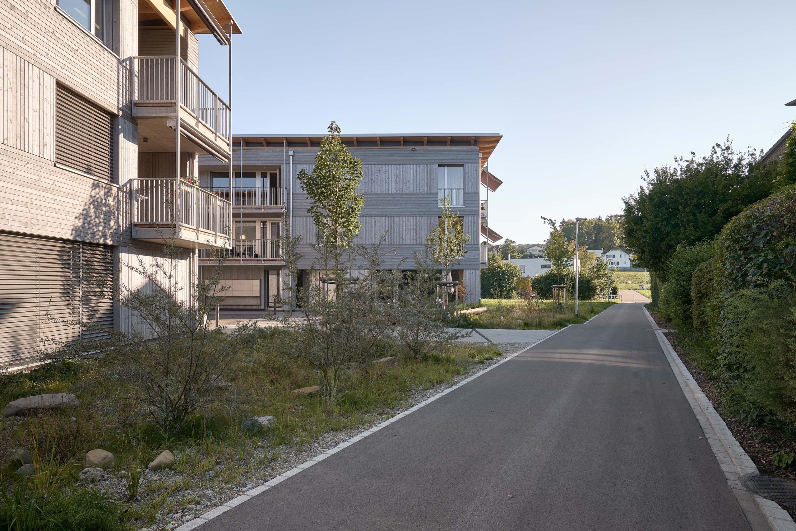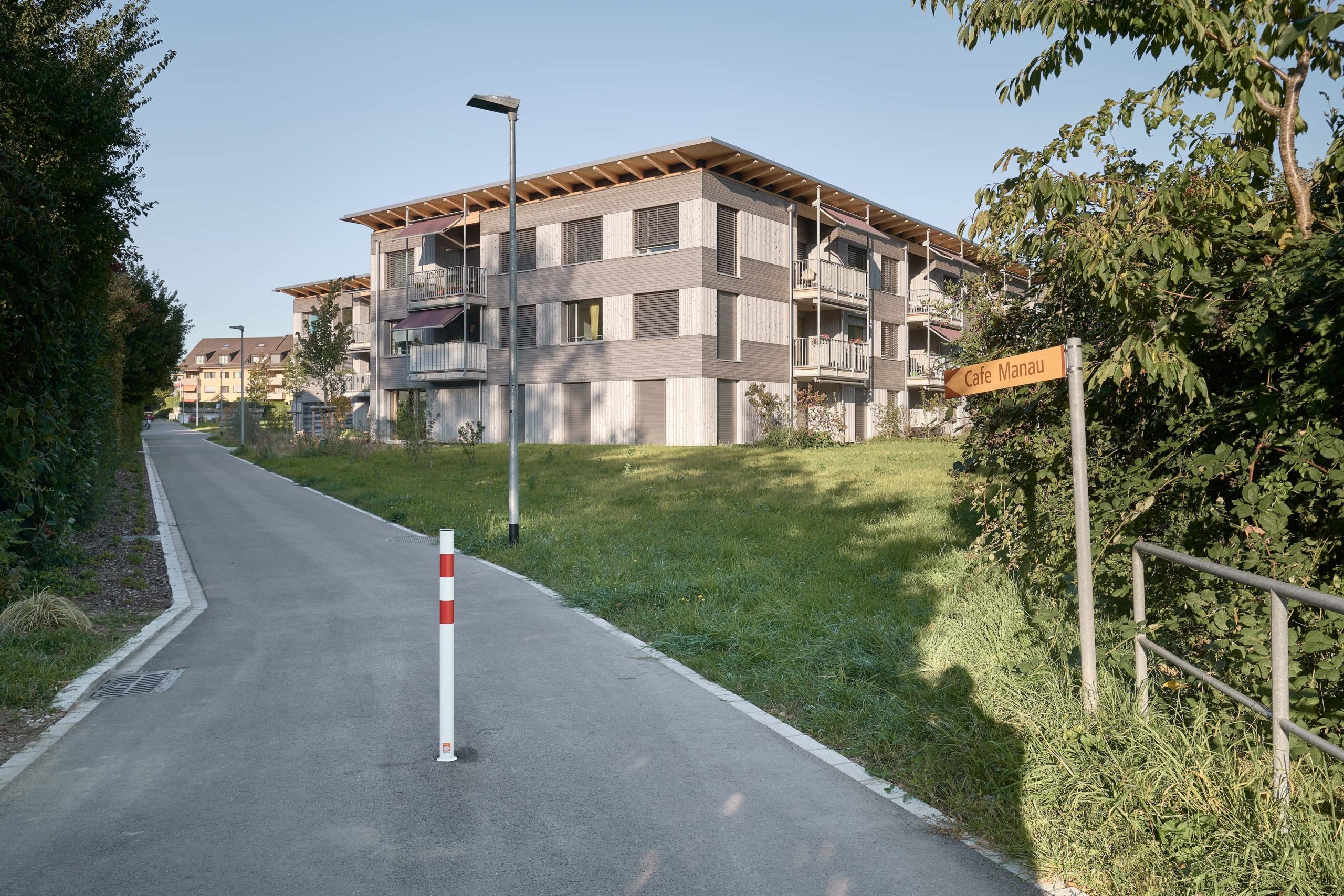 Landschaftlich ist der Ort geprägt durch den reizvollen Bachverlauf im Süden mit seiner Vegetation und die grosse Wiese im Norden. Das bauliche Umfeld ist sehr heterogen. Wichtige Elemente sind die gegenüber liegende St.Leonhardskapelle und der Wohnhof der benachbarten Genossenschaft Manau mit seiner Sonderstellung im Quartier. Das gemeinschaftliche Wohnen am Hof scheint uns für die gestellte Aufgabe prädestiniert.